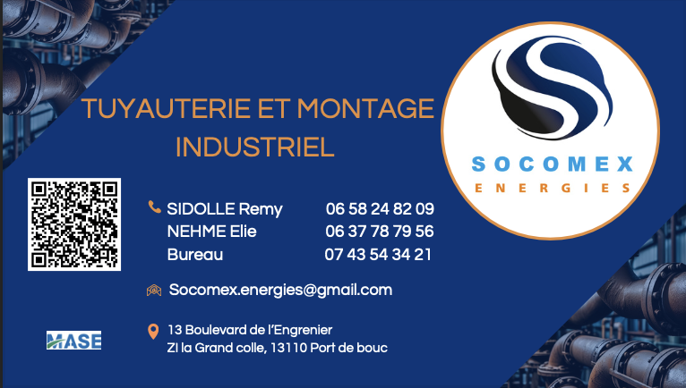 Bienvenue chez Socomex Energies, votre partenaire de confiance en tuyauterie industrielle en France et à l'Etranger!